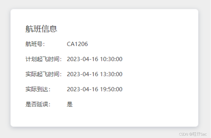 (2)完成 Vue 调用航班管理接口 API,获取接口返回的航班号、计划起飞时间、实际起飞时间、到达时间、是否延误信息,填充至 Vue 页面中,将 Web 页面和代码截图保存。