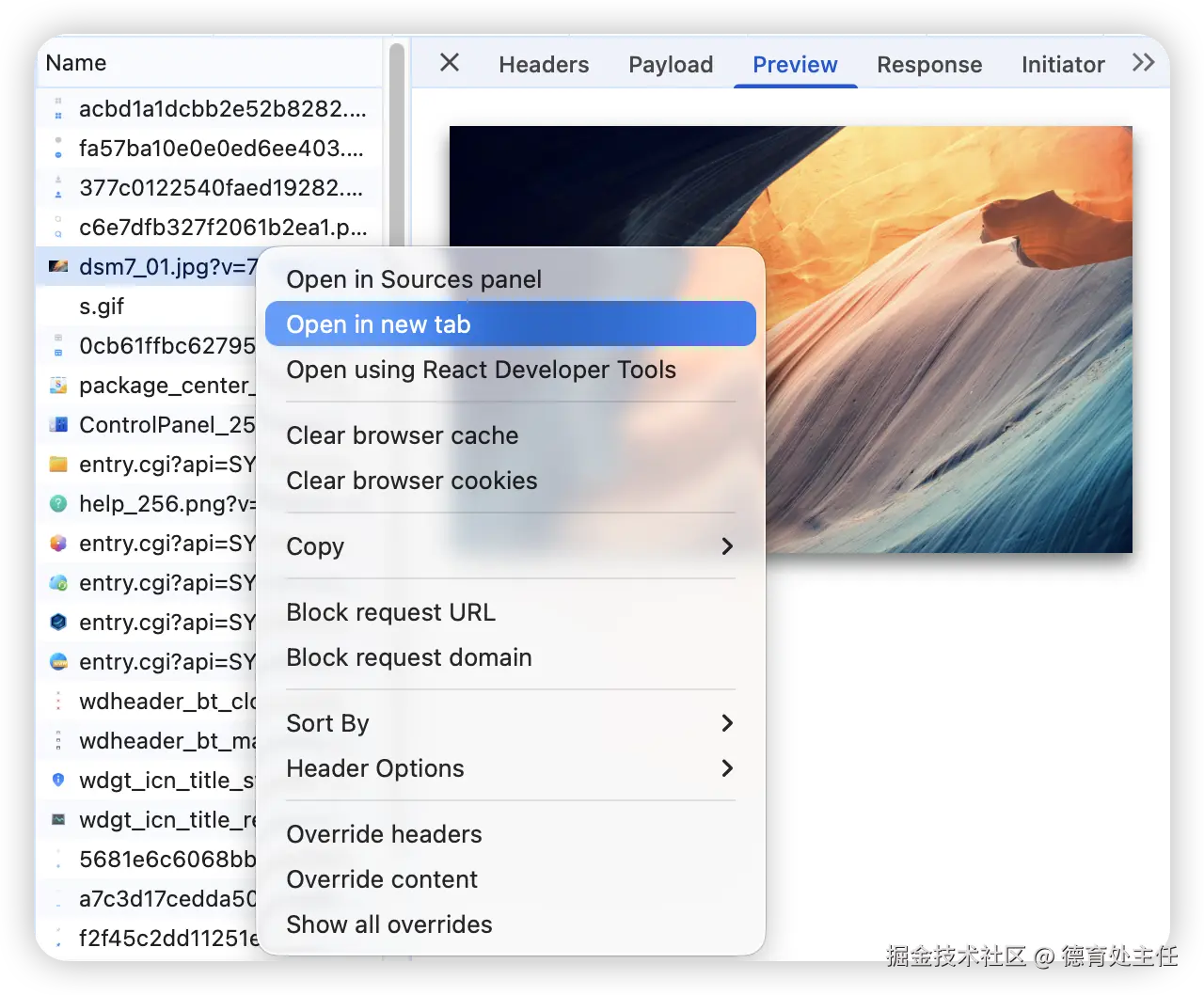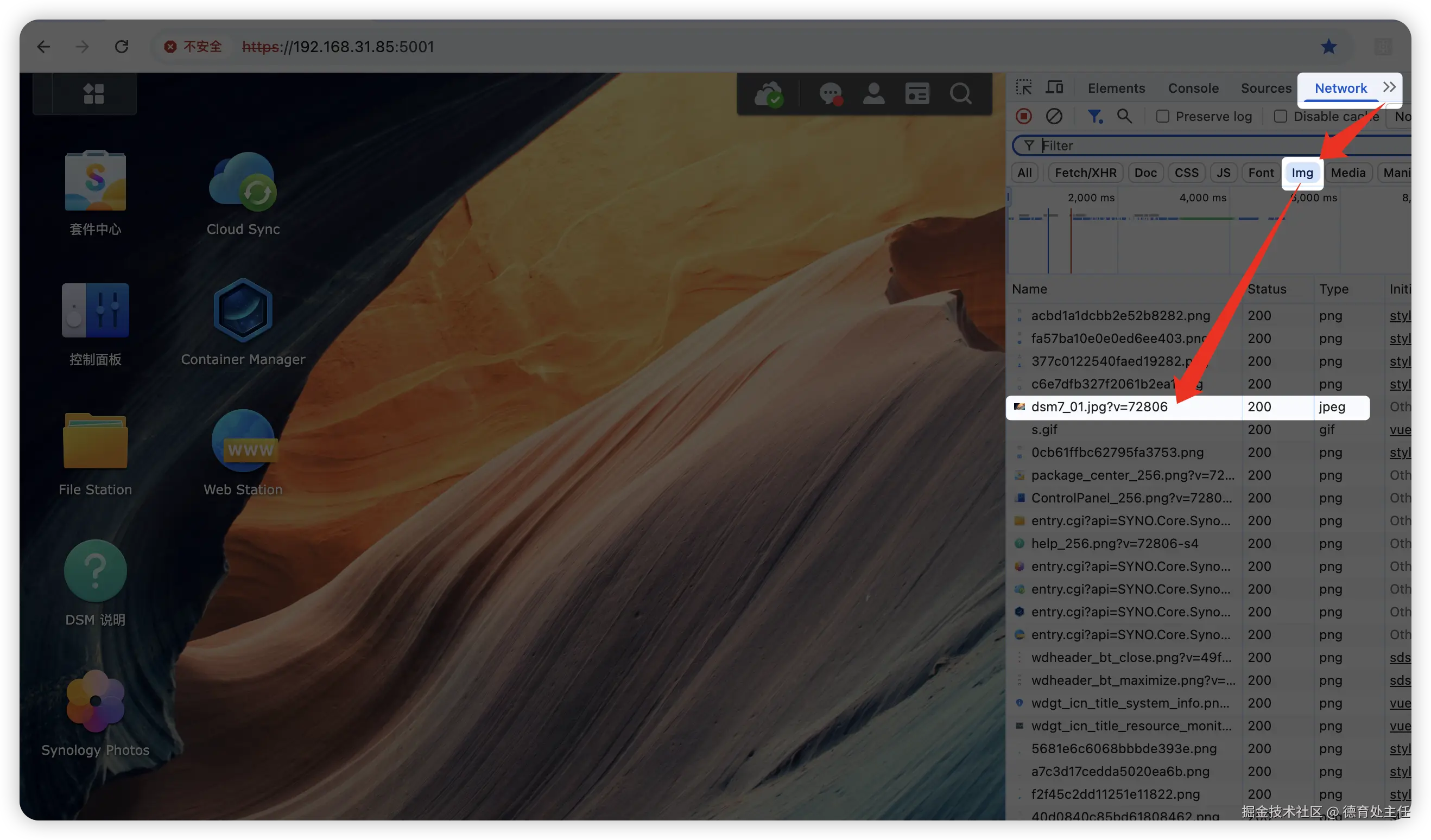 按F12打开控制台,选择"Network",筛选项选择"Img"之后就能看到"dsm7_01.jpg"这张图片。