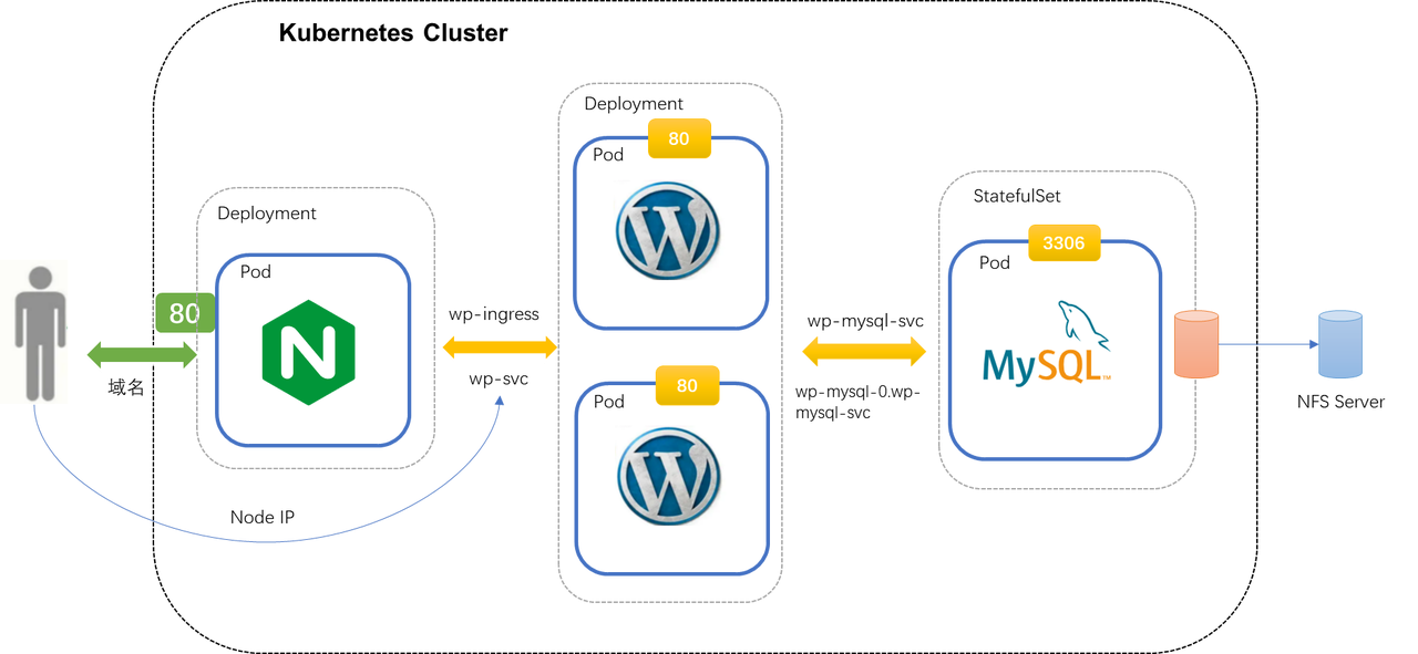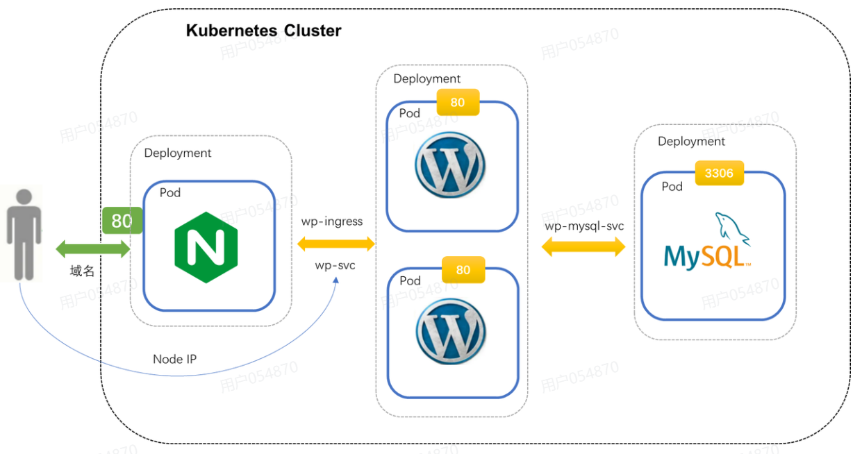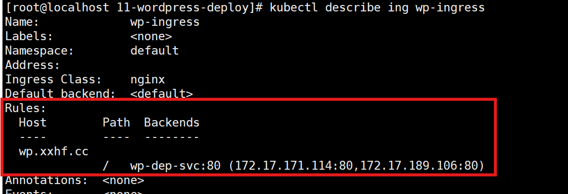注:ingress七层负载直接用之前的就好了,因为ingress规则匹配的是svc服务向外暴露的域名wp-dep-svc,这个域名是固定不变的