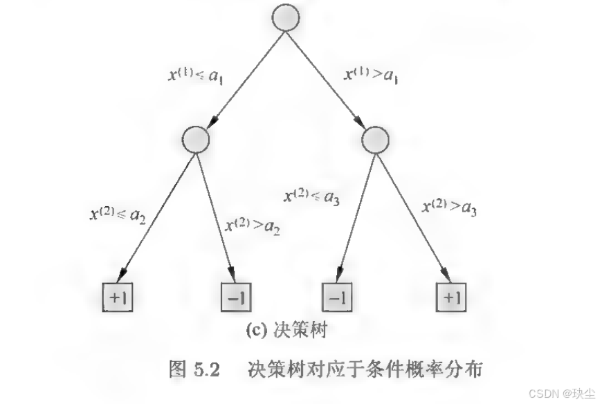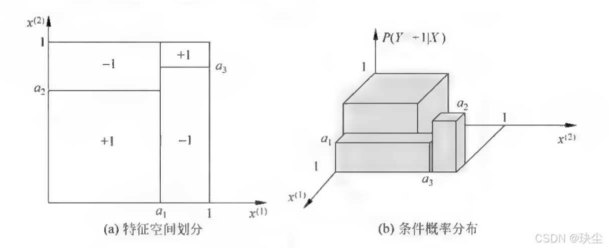 这种条件概率分布实际上相当于对特征空间进行了划分(partition) ,每个叶结点对应特征空间中的一个单元(cell)或区域(region),该区域内的所有实例都被归为同一类别。