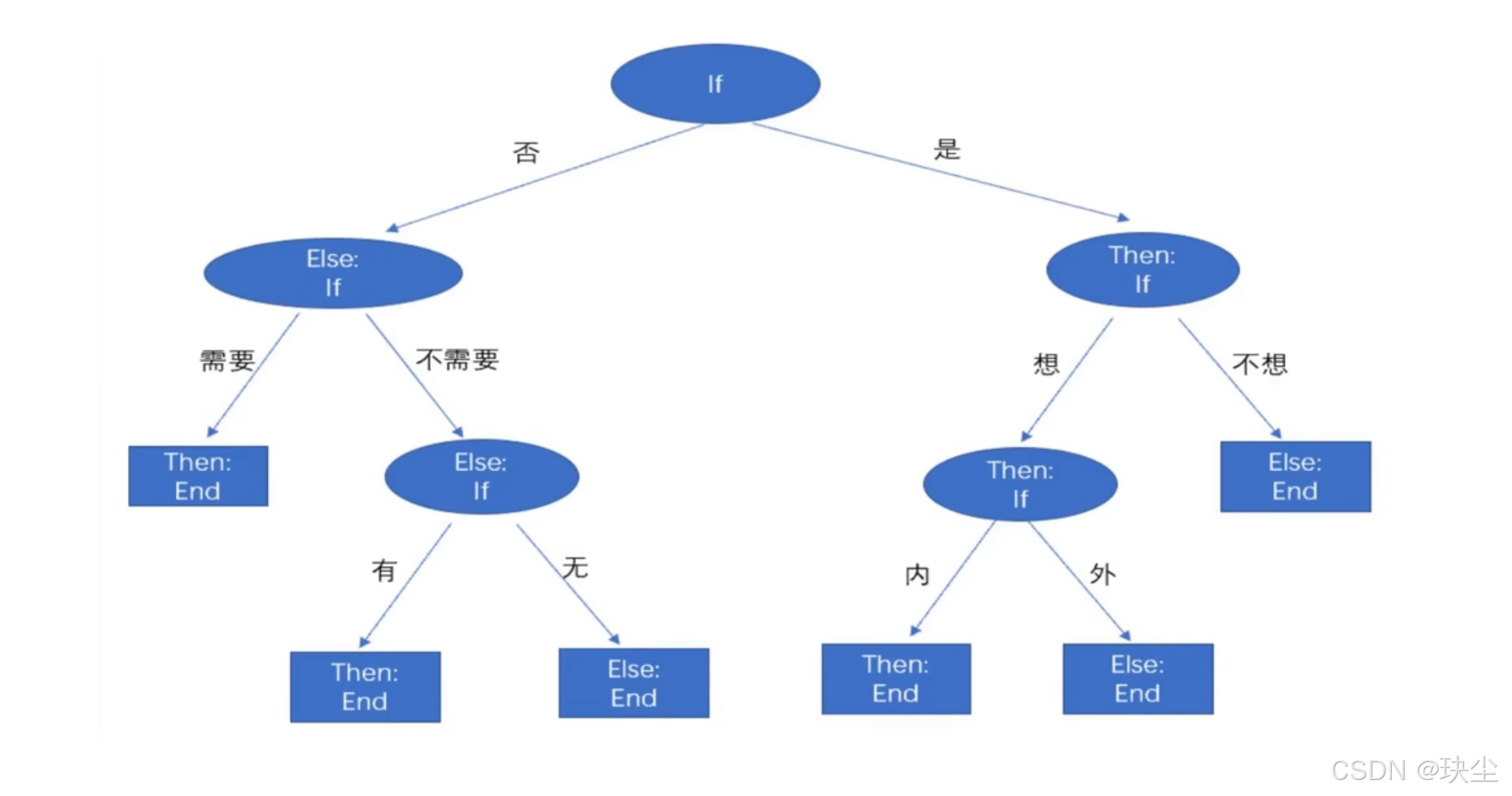 决策树本质上就是一系列if-then规则的集合,这是程序员最熟悉的一种逻辑表达方式。从根结点到每个叶结点的路径都对应着一条if-then规则。值得注意的是,一个矩形叶结点可能会有多条路径到达,正如"条条大路通罗马"。但对于每一个具体的实例,只能选择其中一条路径进行分类。