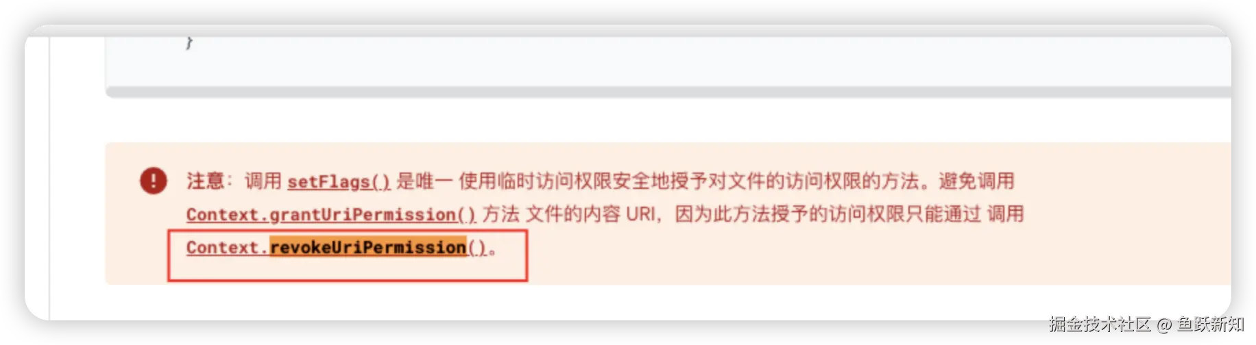 // 后续该应用再尝试通过这个 URI 访问时会因为缺乏权限而失败