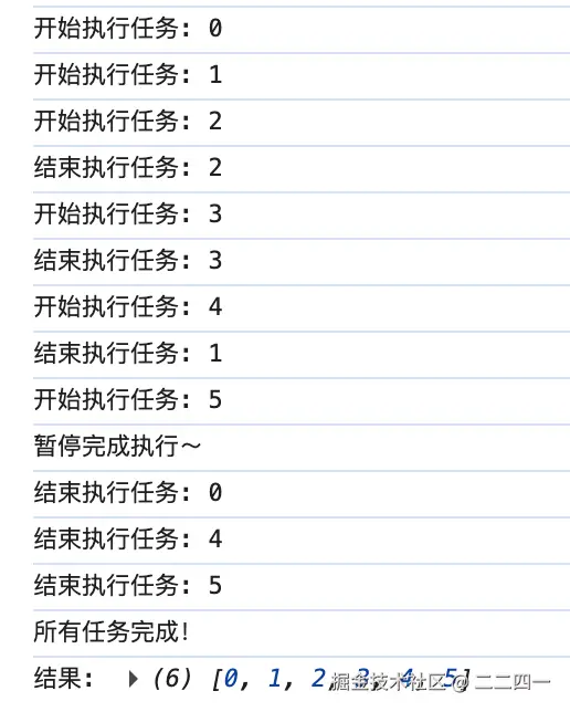 const res = [] // 存所有任务返回的 Promise,用来最终 Promise.all