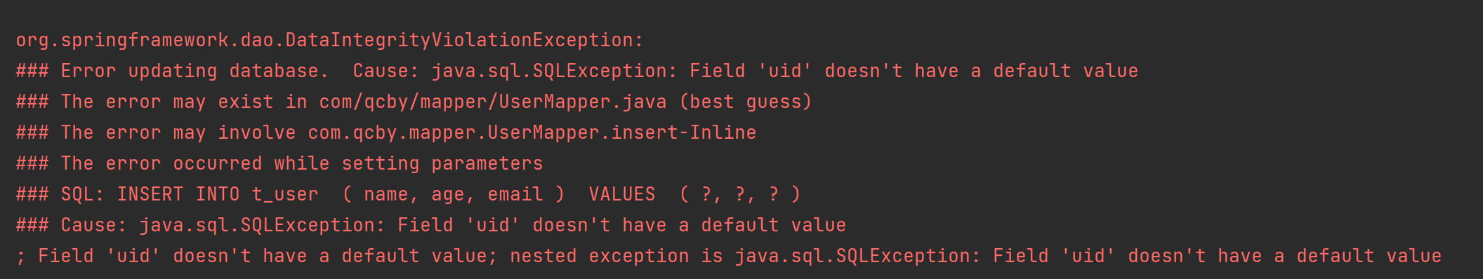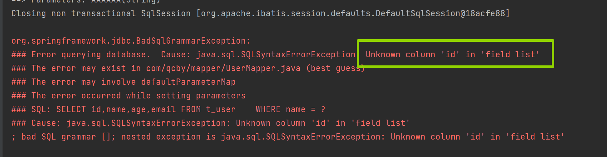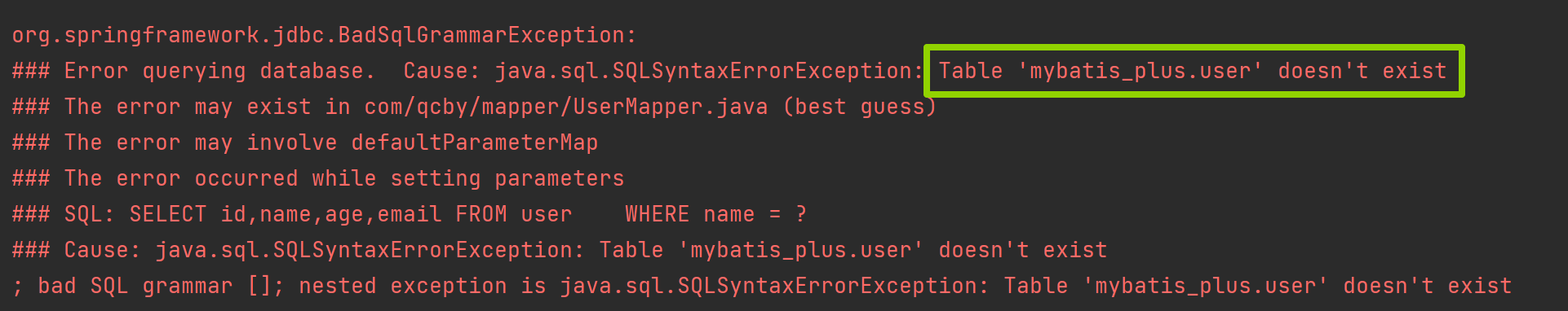 我们看到数据库的报错说user表不存在,所以MybatisPlus操作的是我们指定的User类