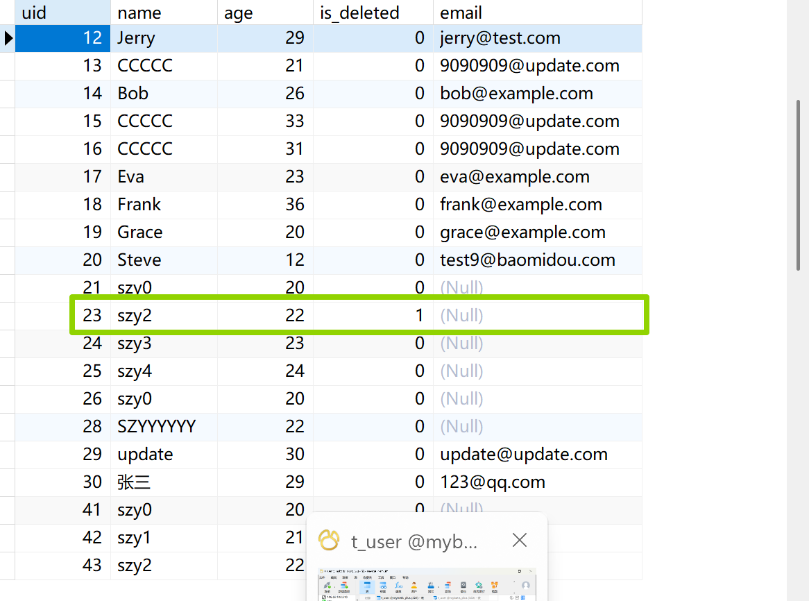 经过以上的测试,我们可以发现, MyBatis-Plus在执行SQL语句时,要保证实体类中的属性名和 表中的字段名一致。
