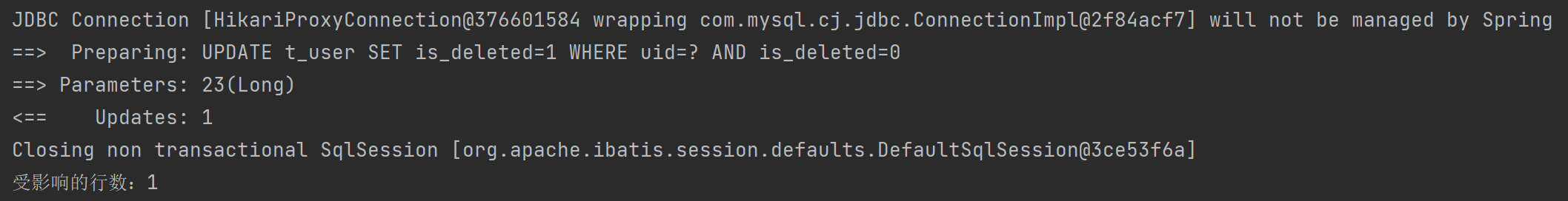 我们可以看到它实际上执行的是update方法,把id为23的记录的is_deleted字段更新成了1