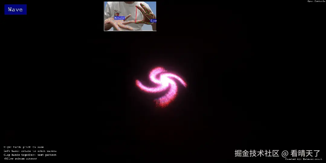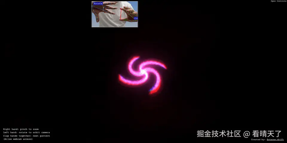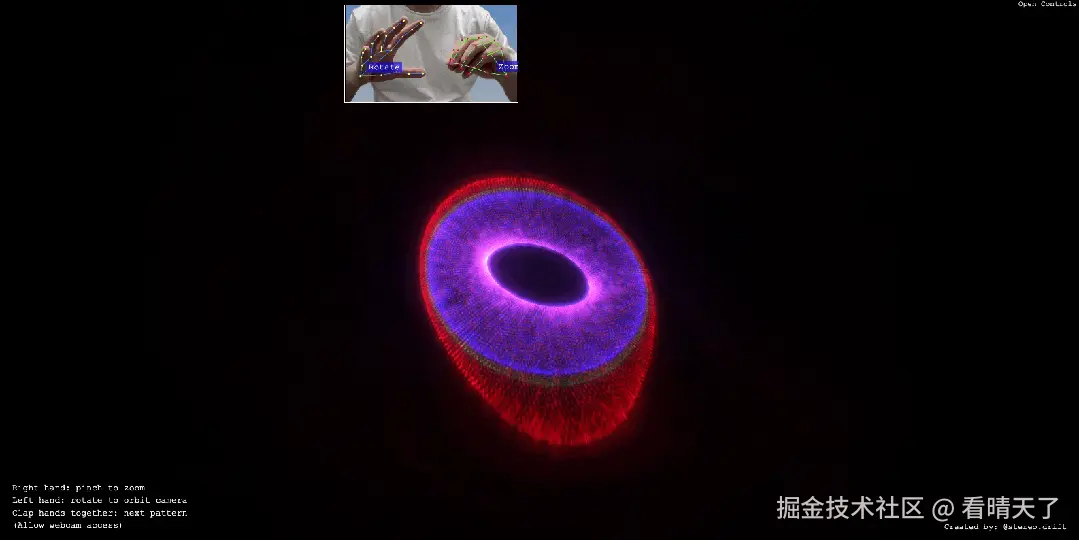 最近发现了一个很赞的开源项目 "stark-shapes",它将手势识别 与 3D 动画 完美结合,借助 Three.js 和 MediaPipe 手势跟踪技术,实现了通过手势操控 3D 粒子动画的效果,视觉体验非常出色。