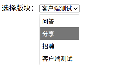 本关任务:创建一个下拉列表,默认选中客户端测试,没有value值 。