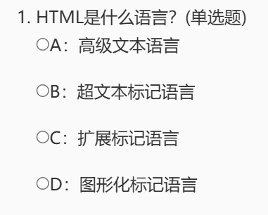 1. HTML是什么语言?(单选题)<br>