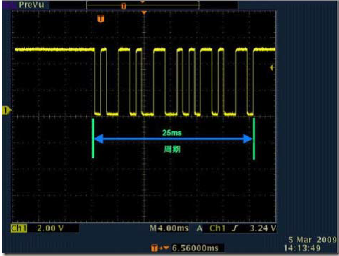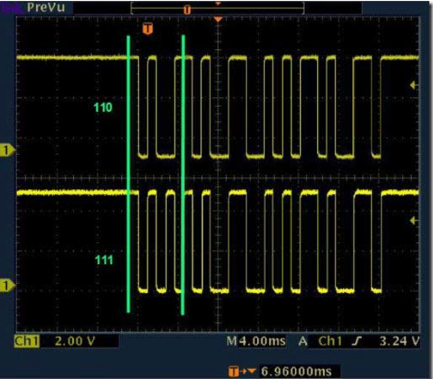 如图所示是同一按键重复按两次所得波形,只有第三位是相反的逻辑,其它的位逻辑都一样。