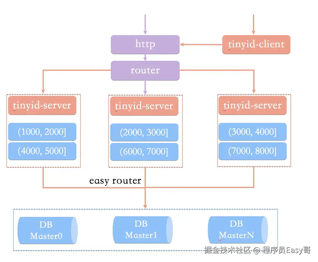 - 为了避免在获取新号段的情况下,获取唯一ID的速度比较慢。Tinyid中的号段在加载到一定的程度(比如一半),就去异步加载下一个号段,保证内存中永远始终有可用的号段。