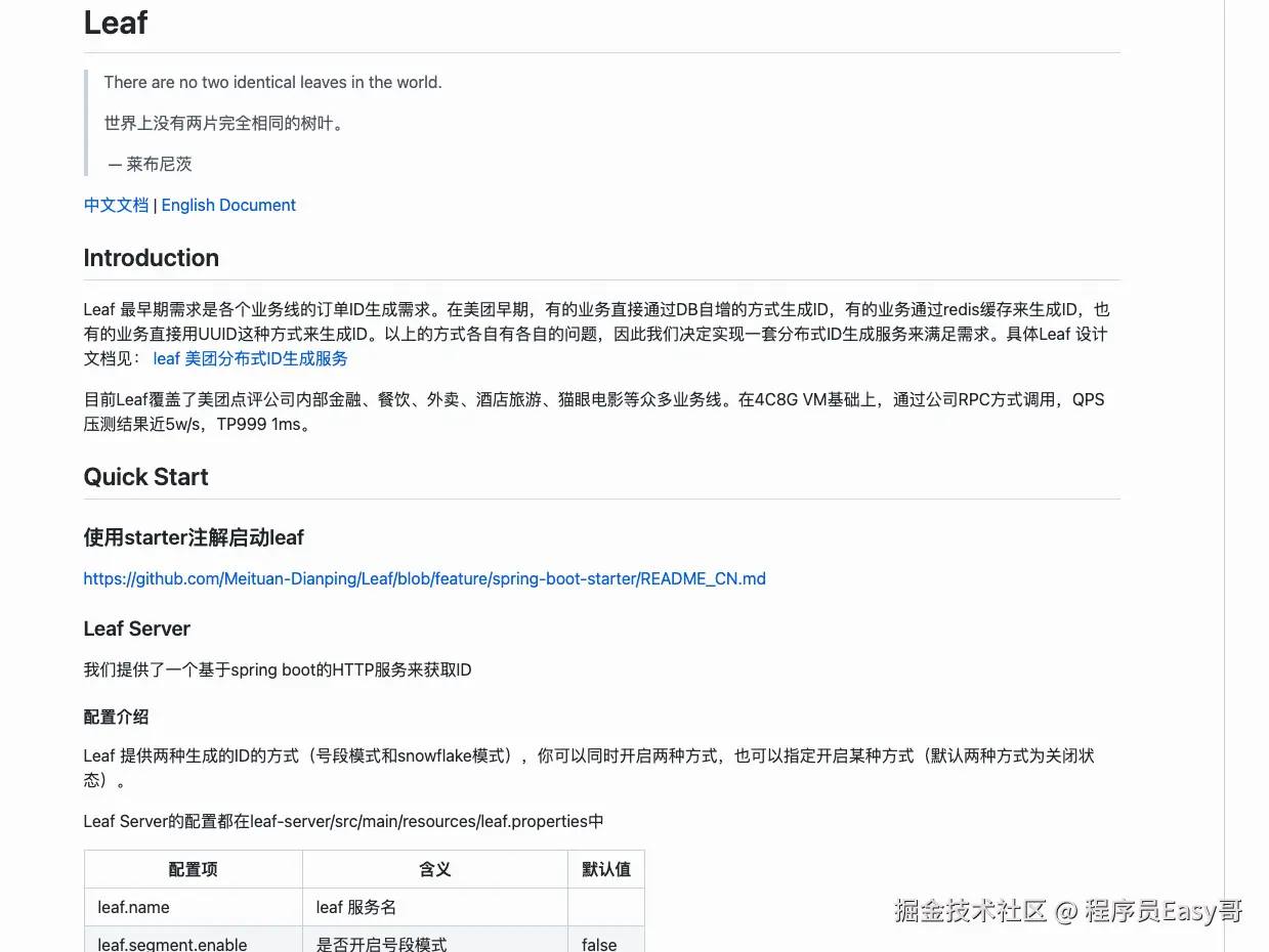 Leaf 提供了 号段模式 和 snowflow(雪花算法) 这两种模式来生成分布式ID。