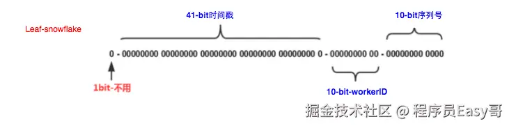 主要是workerId生成不同,leaf中workId 是基于zk的顺序id来生成的,每个应用在使用Leaf-snowFlake时,在启动时都会在zk中生成一个顺序id,相当于一个机器对应一个顺序节点,也就是一个workId。
