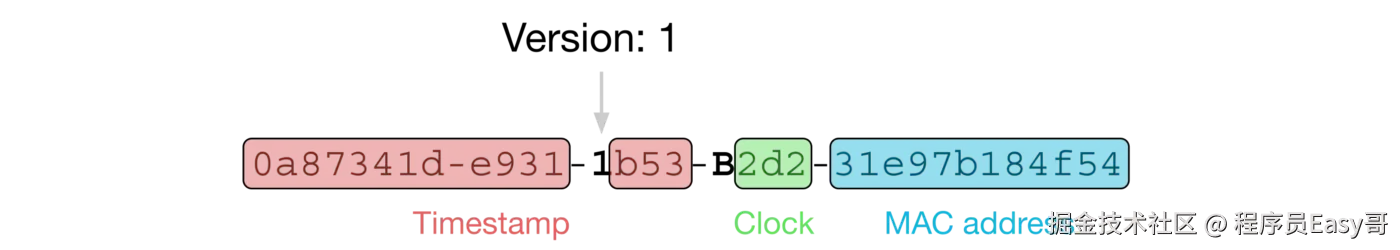 下面是 Version 1 版本下生成的 UUID 的示例:
