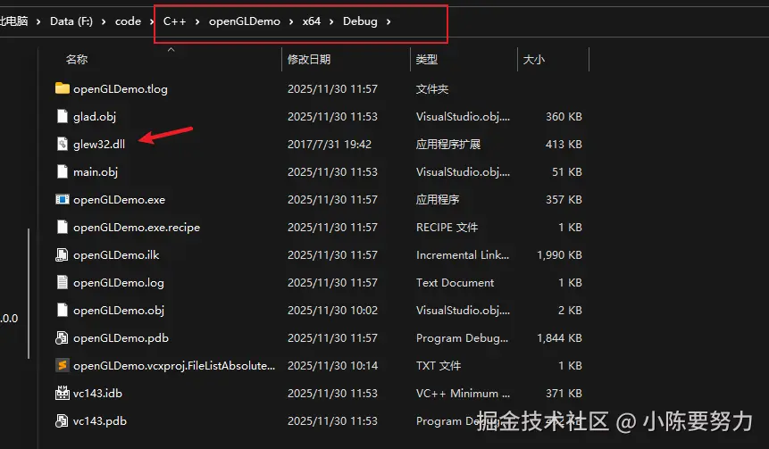 ⚠ 注意:GLEW 的 lib 文件需要与你 VS 项目的平台匹配