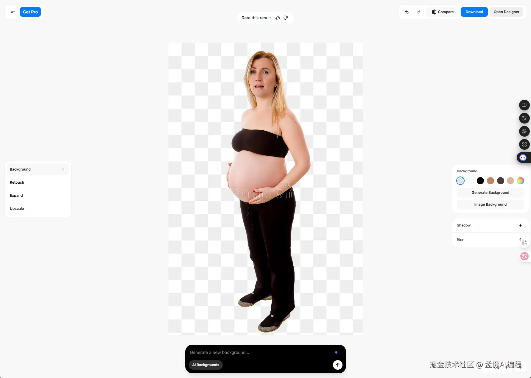 我们上传一张图片,这次它没有引导登录,而是直接跳转一个编辑器页面,并且把图已经抠好了。