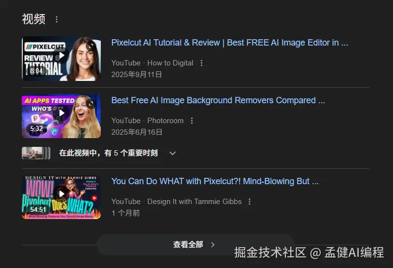 我们去搜 pixelcut 就会发现有很多 Youtube 的宣传,以及公关文章,这是它自己建立的影响力。