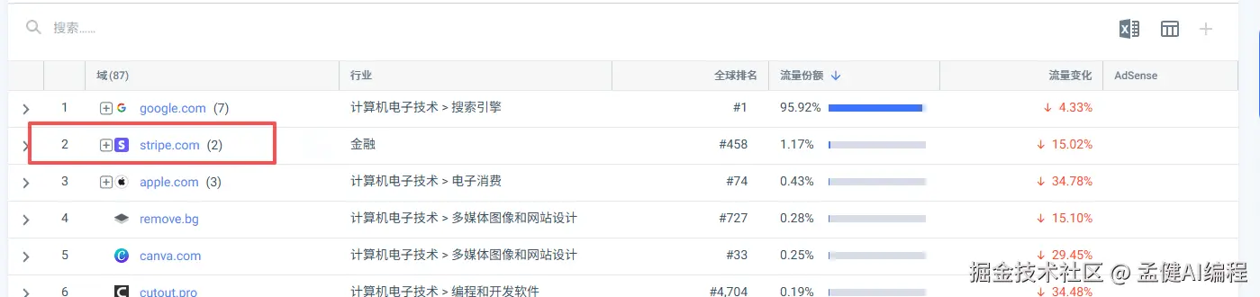 pixelcut 没有屏蔽订单索引,我们从出站流量就可以看到,stripe 的流量占比大概是 1.17%,也就是说,有 1%以上的用户愿意为这个产品付费。