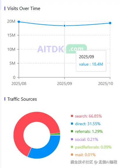 它的流量也很高,大概在 2000 万左右,主要来自于搜索: