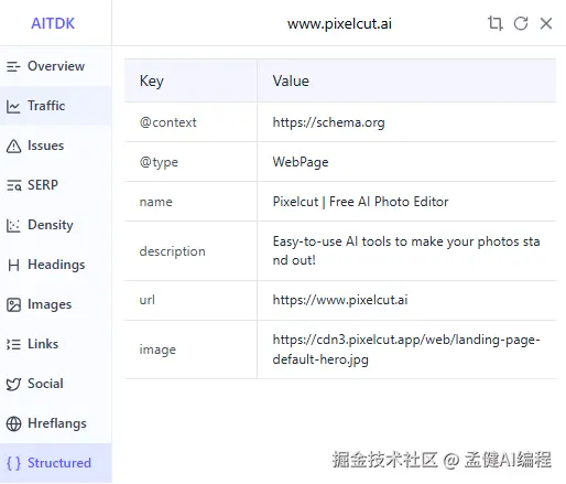 其次,它是有结构化数据的,以及 opengraph,也是到位的,我觉得从技术 SEO 的角度来说,这三件套是值得我们学习的,也是容易被我们忽略的。