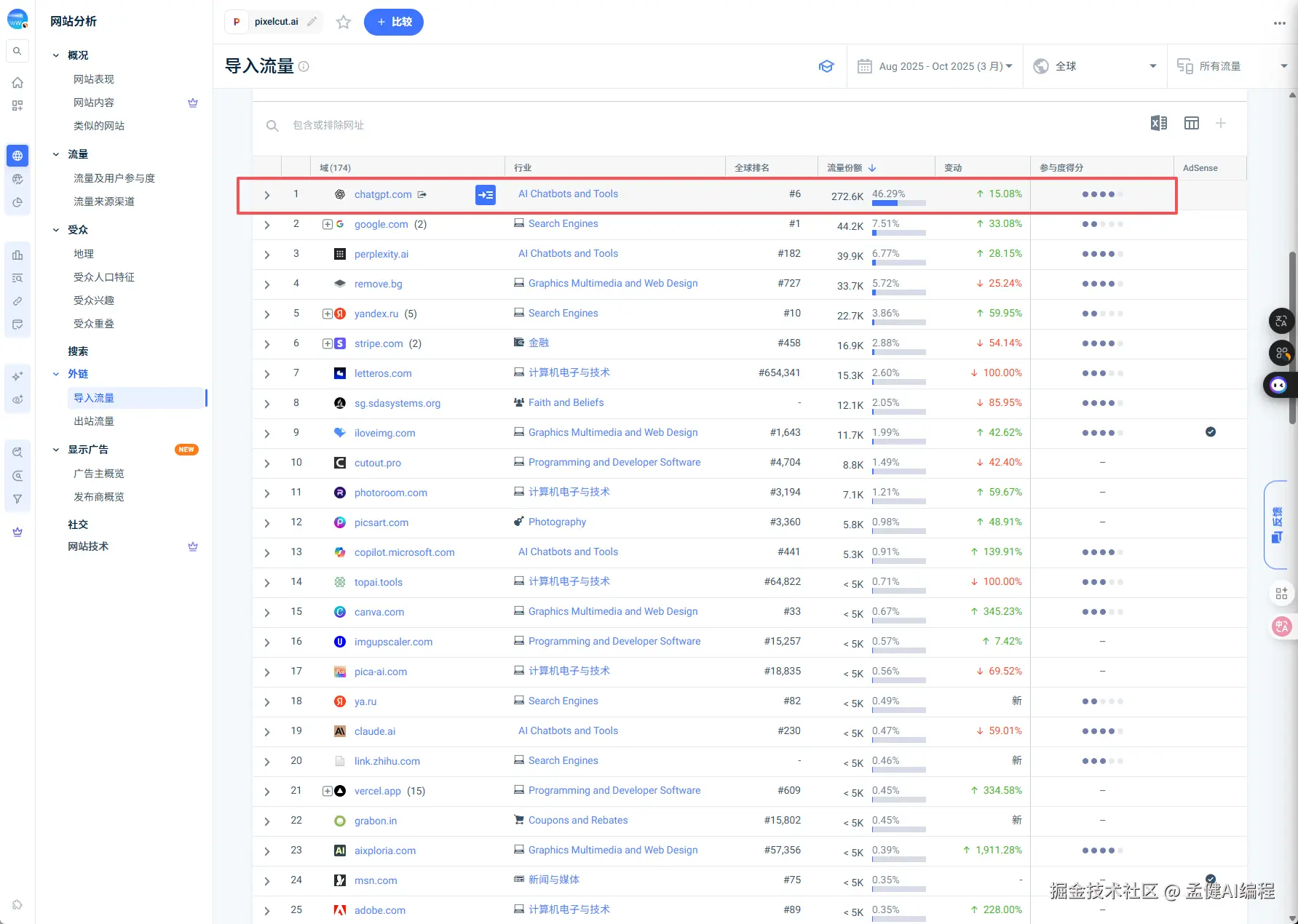 果不其然,看看它的入站流量,chatGPT 直接带来了 20 万的量,朋友们,GEO 的时代到了啊!