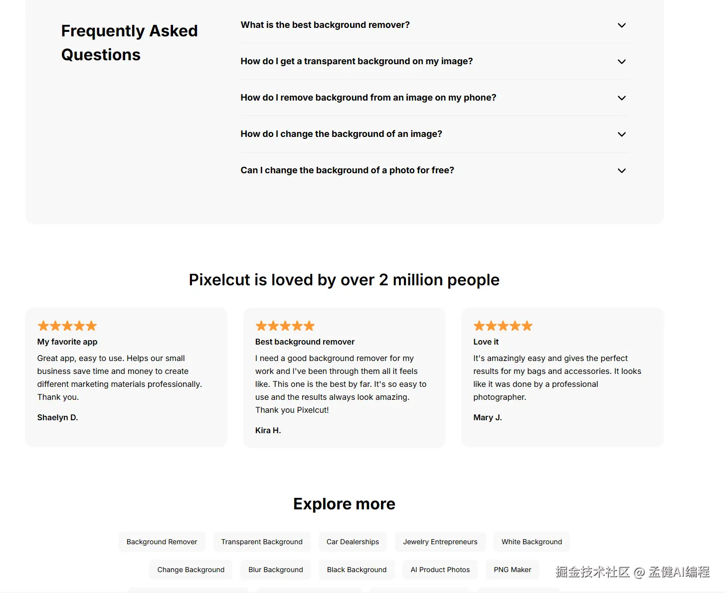 其实 pixelcut 在设计层面并不是很专业,至少从 web 角度来看,而且它的底部 footer 表现的很明显: