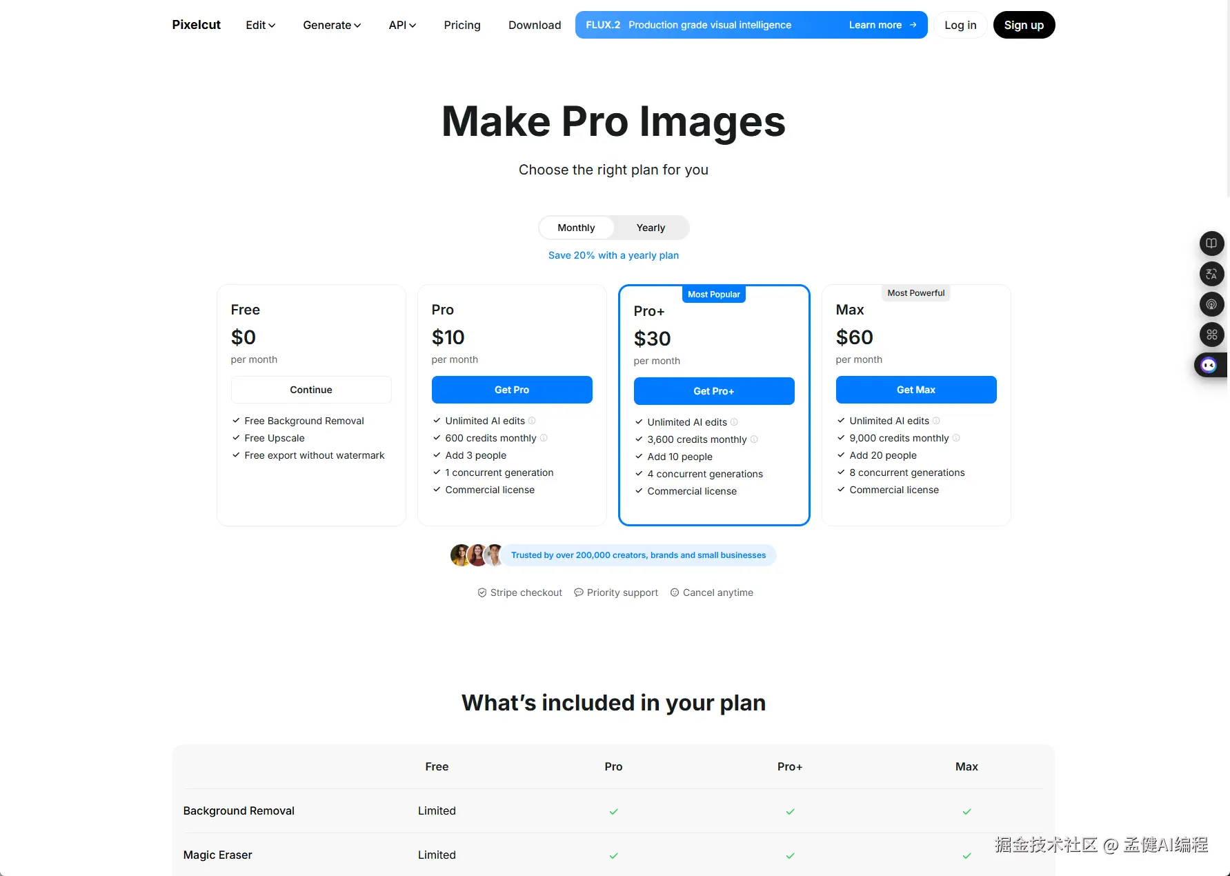 pixelcut 的 Pricing 主引导大家购买$30 的 pro+订阅,不过它的默认竟然引导的是月订阅,而不是年订阅,不知道他们团队是如何考虑的。