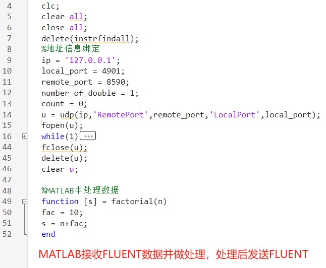 处理完数据后,要把结果回传给FLUENT。同样基于UDP,MATLAB这边的发送代码如下: