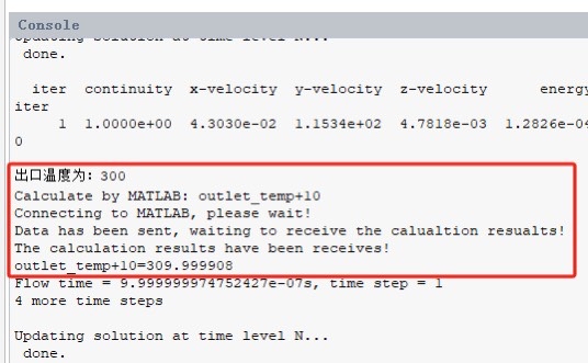 在FLUENT端配置好接收来自MATLAB数据的设置后,就能收到处理后的数据继续进行后续处理了。