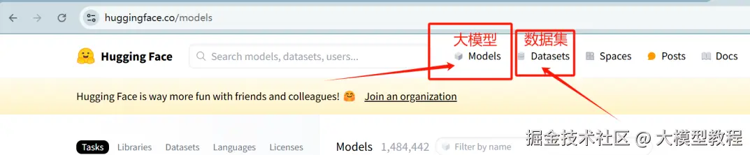 也就是 Models大模型,平台上有世界上最全的大模型。中国的魔塔社区与此类似,不过没有它全。 我们自己也可以上传大模型到hugging face平台。
