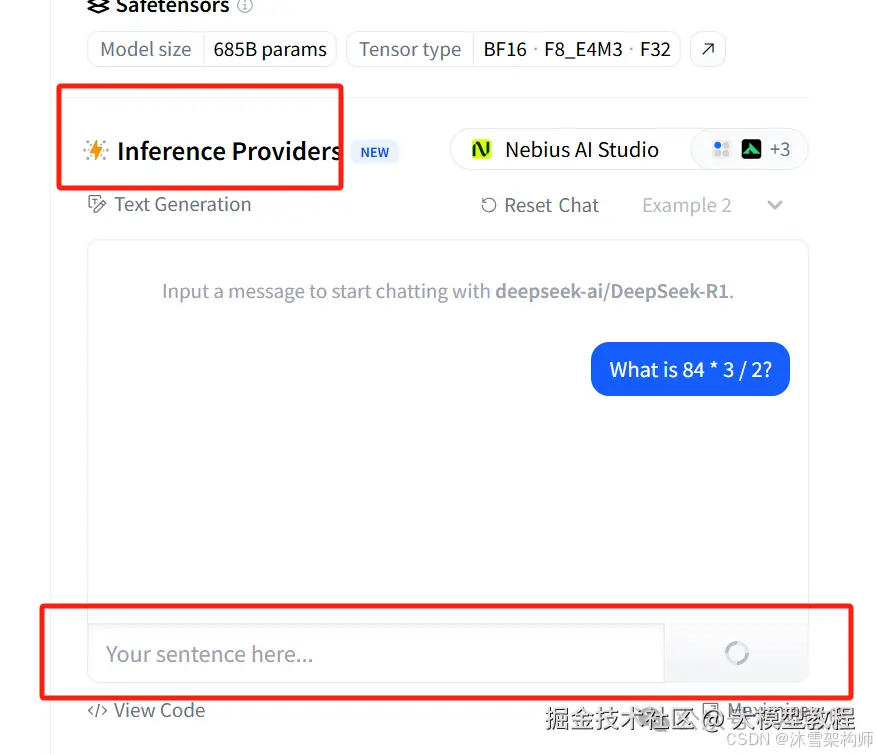 hugging face平台上有很多大模型提供接口试用,列表有黄色闪电标记,详情的右侧有Inference Providers。