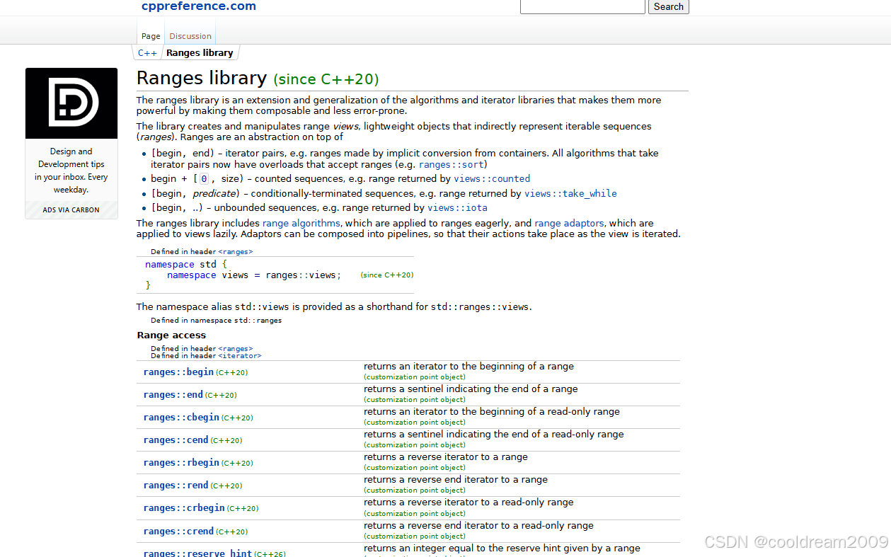- C++20 ranges document https://en.cppreference.com/w/cpp/ranges.html