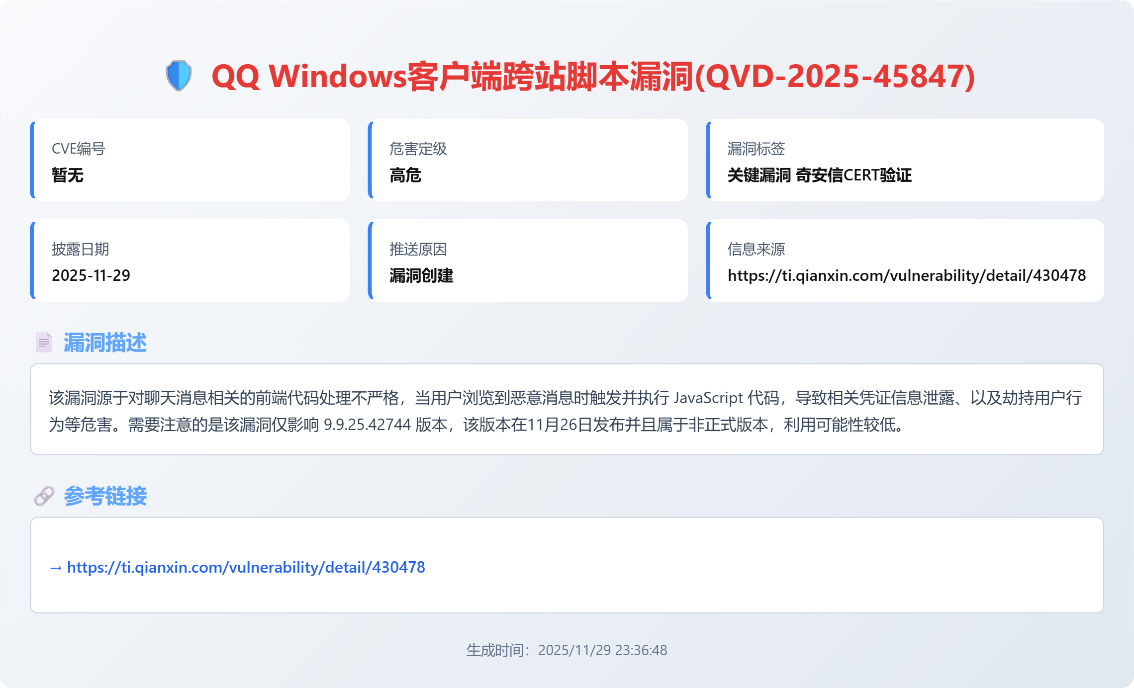 QQ Windows客户端跨站脚本漏洞(QVD-2025-45847)