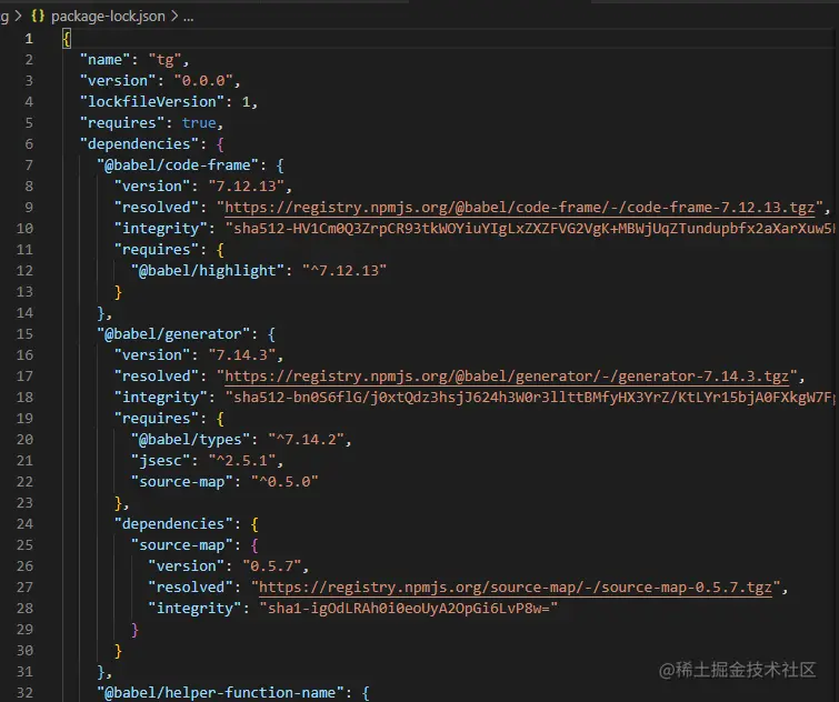 该文件是用来锁定版本记录依赖树的详细信息用的。