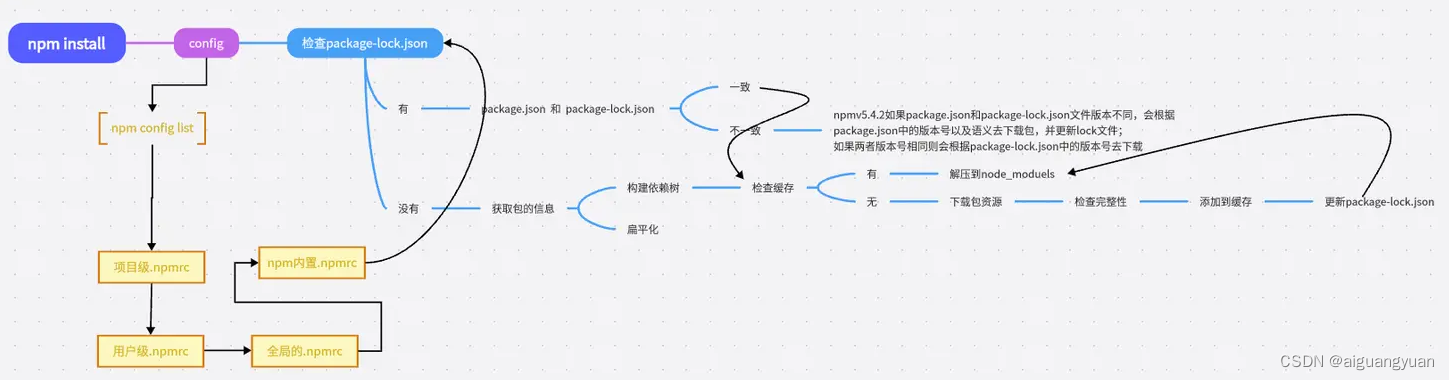 1、npm install 执行之后,首先,检查并获取 npm 配置