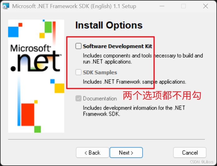 4. 先安装.NET 1.1软件包 注意一定要先安装这个软件包,否则下面打开帮助文档时会提示安装失败 |