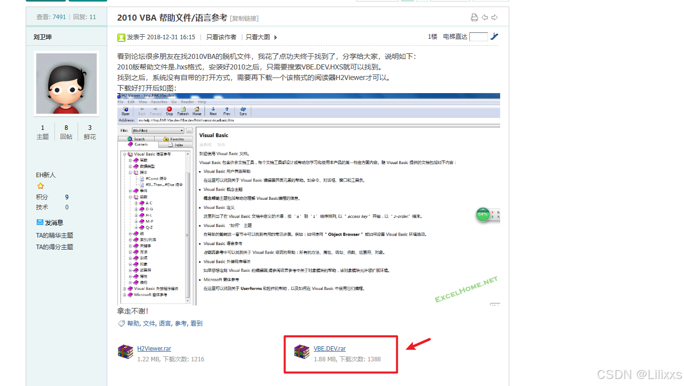 | 2. 下载离线 VB 帮助文档(hxs 格式) 网址:https://club.excelhome.net/thread-1454398-1-1.html | ![]() |