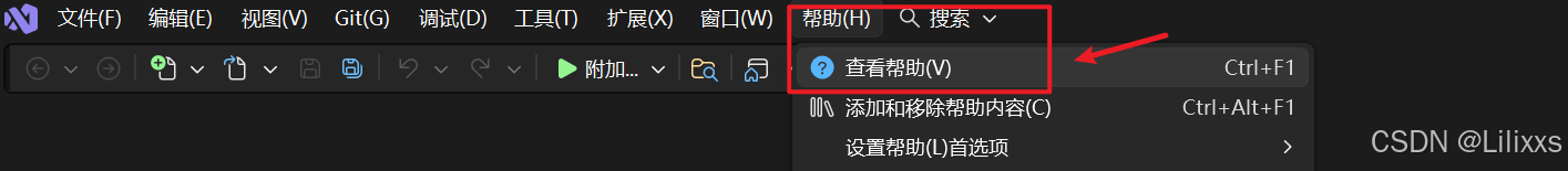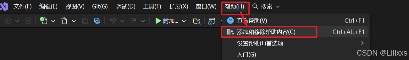 | 3. 进入软件界面后,点击上方【帮助】-->【添加和移除帮助内容】 VS 会打开 MS Help Viewer 软件,可在此软件中下载 VS 支持的各类语言、Windows 系统 API 帮助等信息 | ![]() |