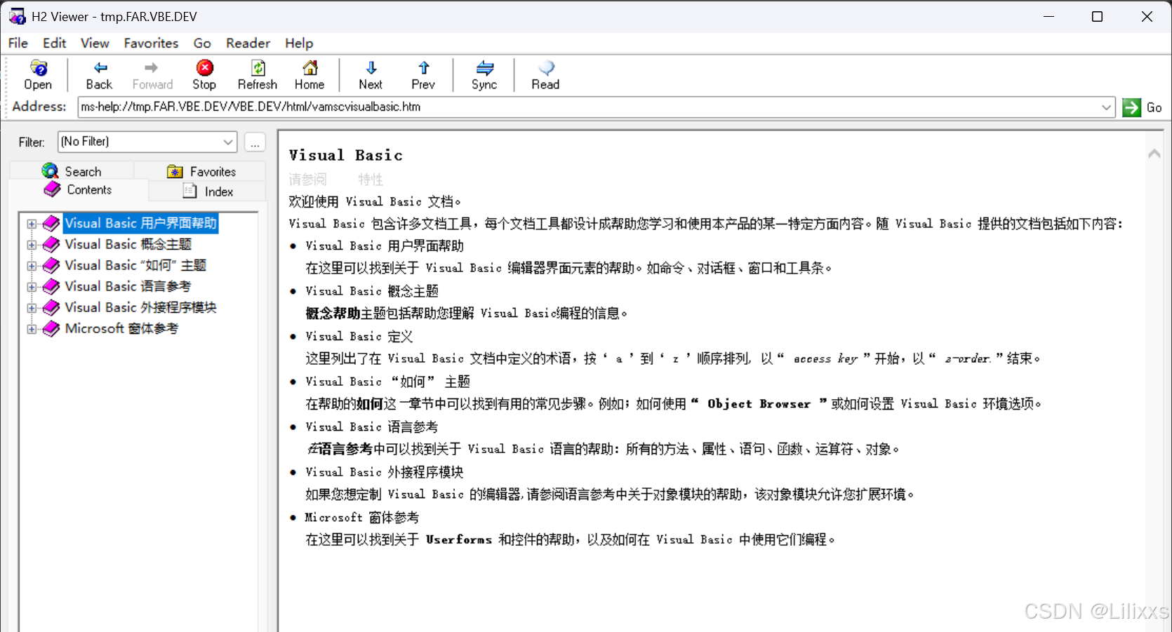 旧版 VB 官方帮助文档使用hxs格式,需要以下内容才能打开: