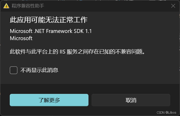 | 1. 系统可能会提示:此应用可能无法正常工作 解决方法:直接关掉提示,不用管 | ![]() |