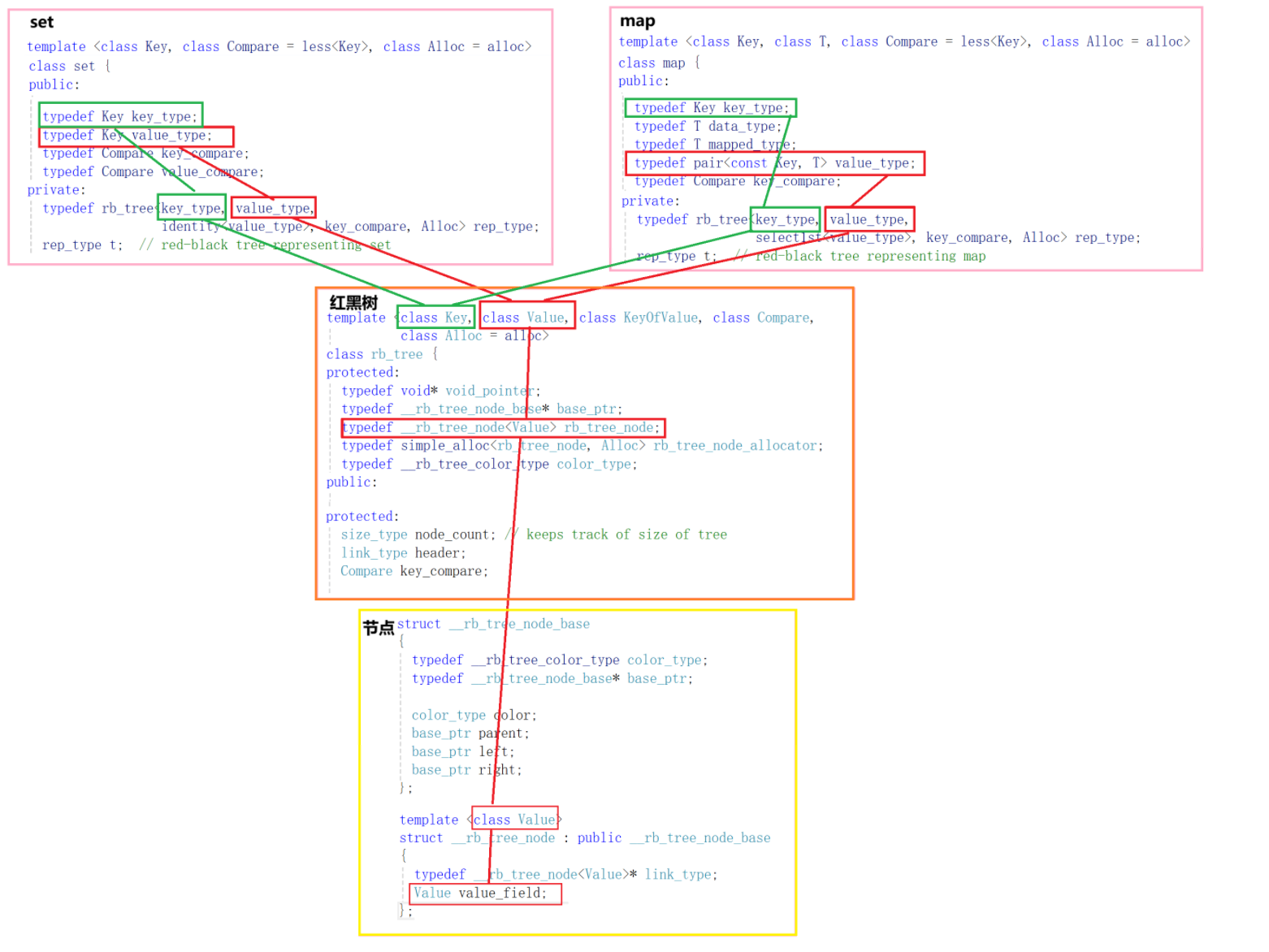 rb_tree的第二个模版参数Value,决定了红黑树节点里实际存什么数据: