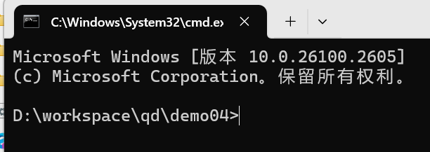 例如:项目目录为:D:\workspace\qd\demo04,则dos如下