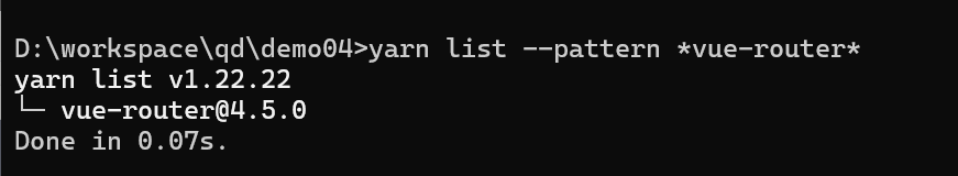 你还可以使用--pattern参数来过滤依赖项列表。例如,要查看包含"vue-router"的依赖项,可以运行以下命令: