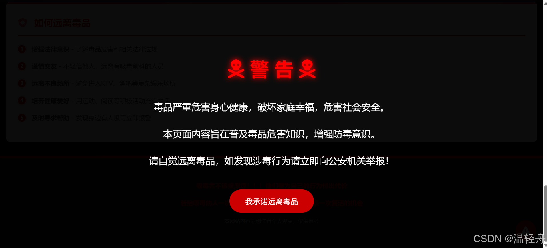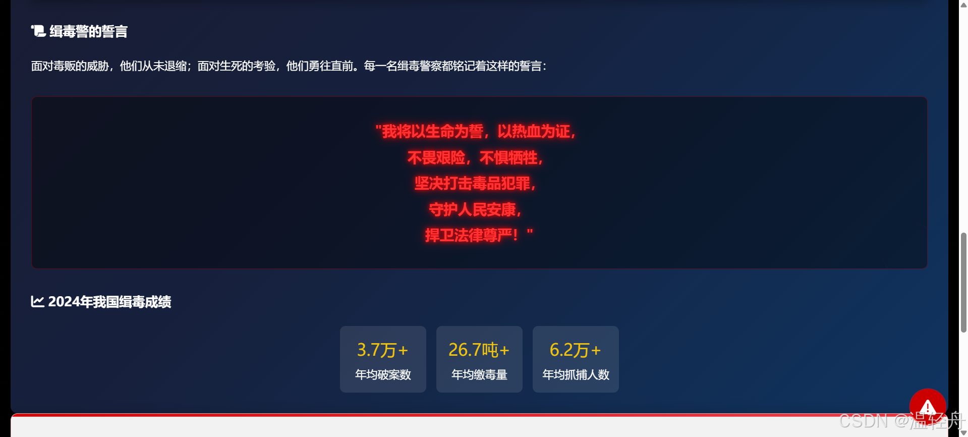 - 标题背景的脉动渐变象征禁毒斗争的持续进行