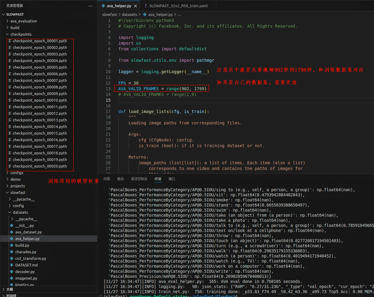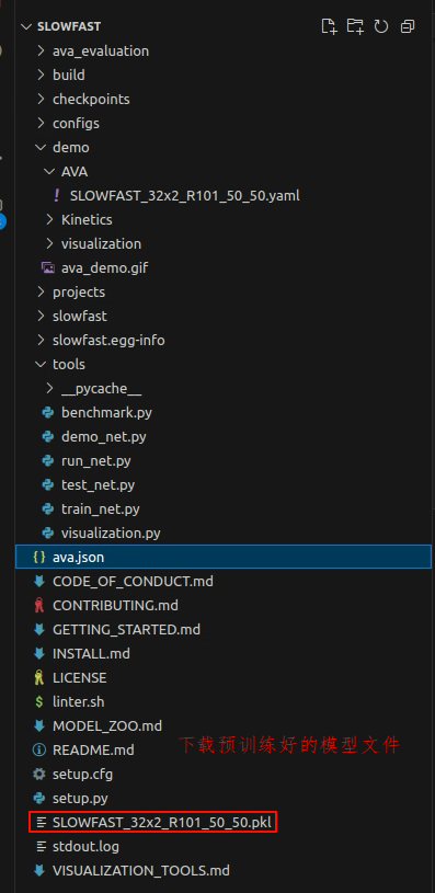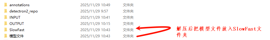 全部解压后将模型文件里面的两个预训练模型放入SlowFast文件夹中