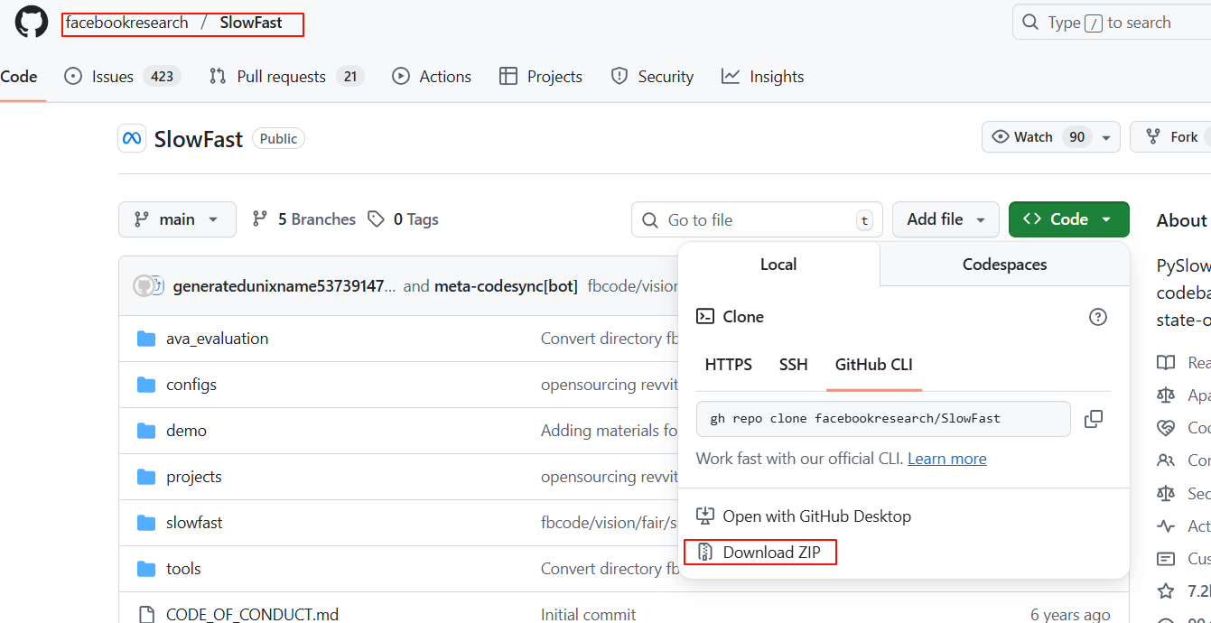1、下载SlowFast地址:https://github.com/facebookresearch/SlowFast
