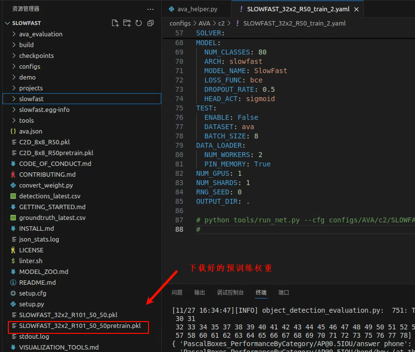 下载好的权重文件是:SLOWFAST_32x2_R101_50_50.pkl