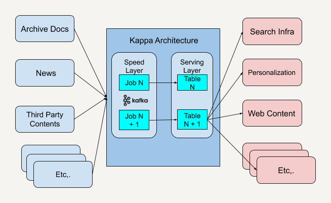 - 多样处理方式:基于Kafka的Consumer可做即时内容加工、推荐、审校、分发等。