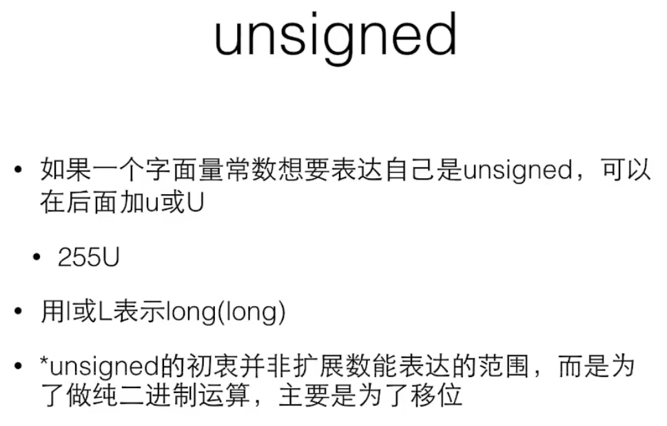 比如写 unsigned int a = 255U; ------ 这里的 255U 明确说 "我是无符号数",和 unsigned int 的规则对应上。