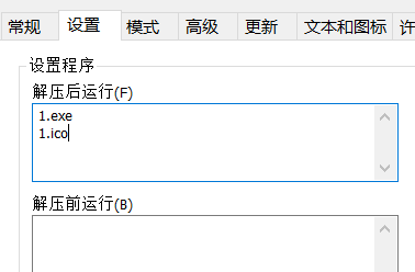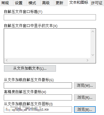 选择"文本和图标"选项卡,选择"从文件加载自解压文件的图标"选择刚刚的图标。